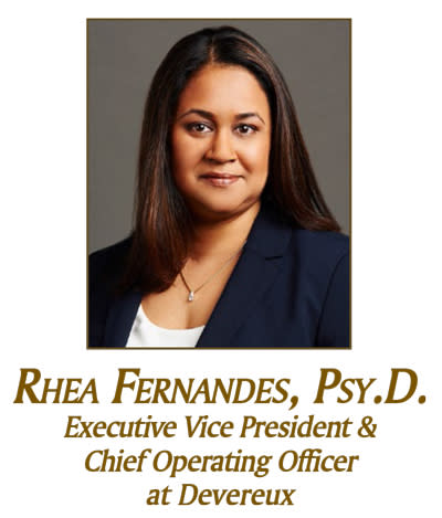 Rhea Fernandes, Psy.D., executive vice president and COO of Devereux, oversees operations of the organization’s national network spanning 12 states with nearly 6,500 employees. She is energized by the opportunity to unlock human potenital in the lives of individuals with emotional, behavioral and cognitive differences, as well as the team that shows up every day to serve and support those in Devereux's care. Under her leadership, Devereux has brought a new level of intentionality and strategic approach to investing in the growth of all employees.